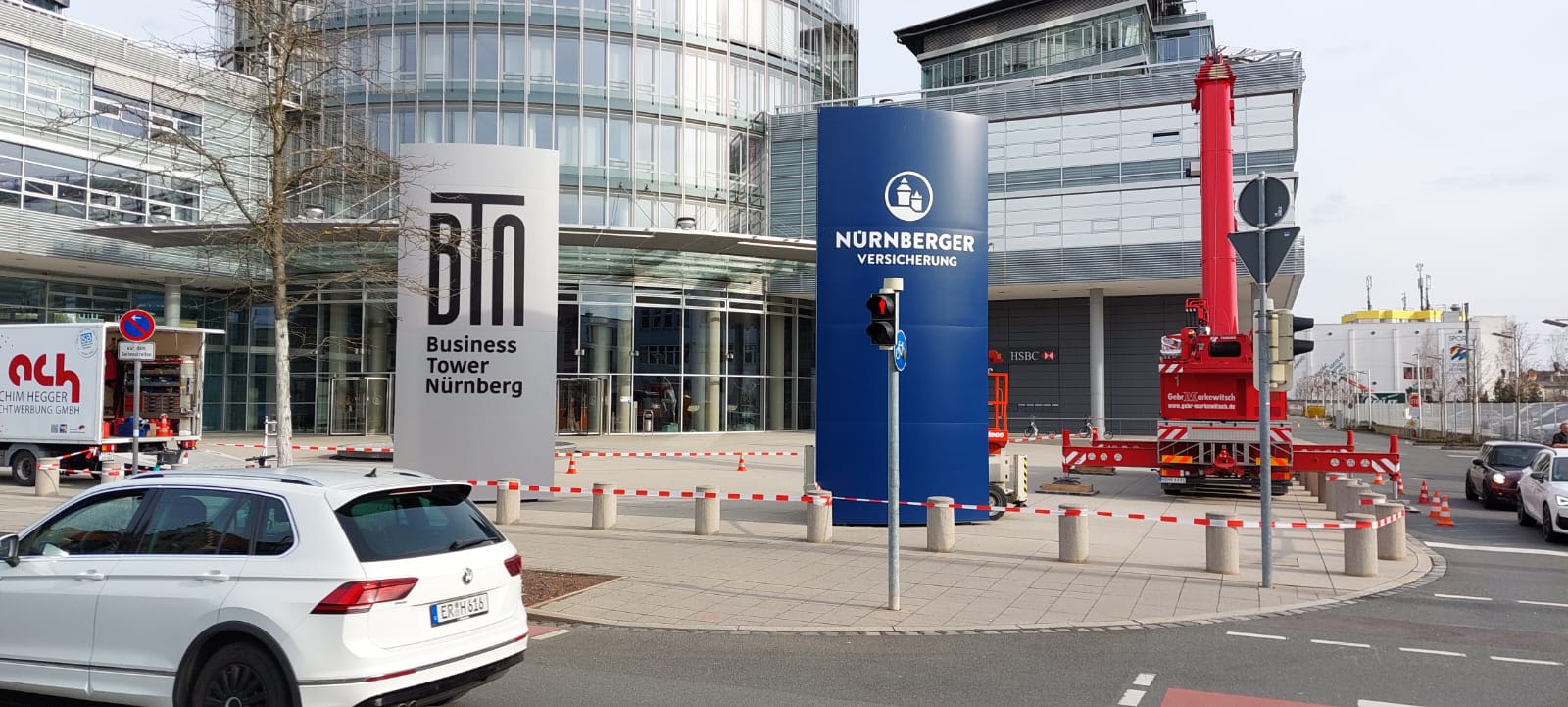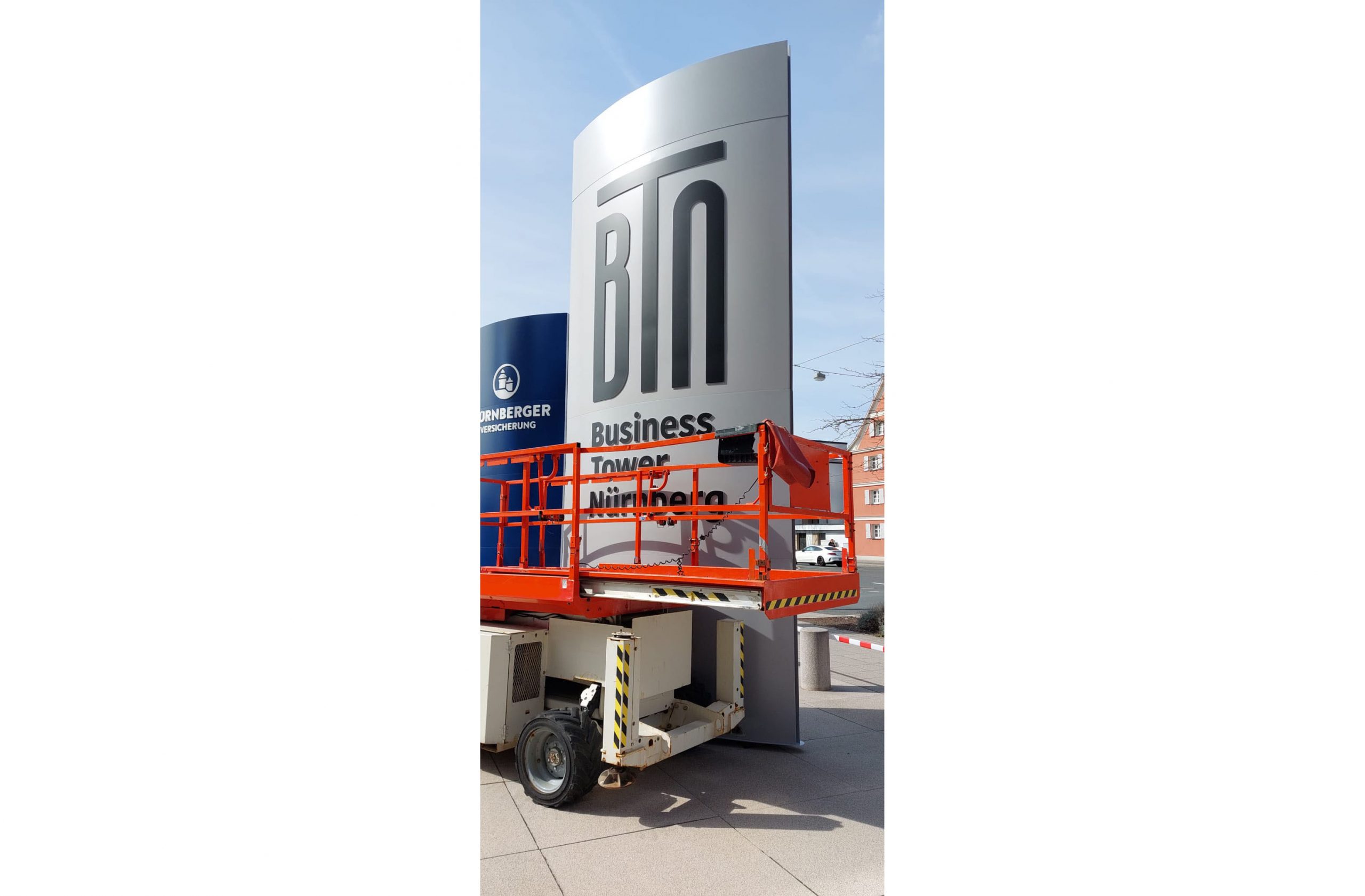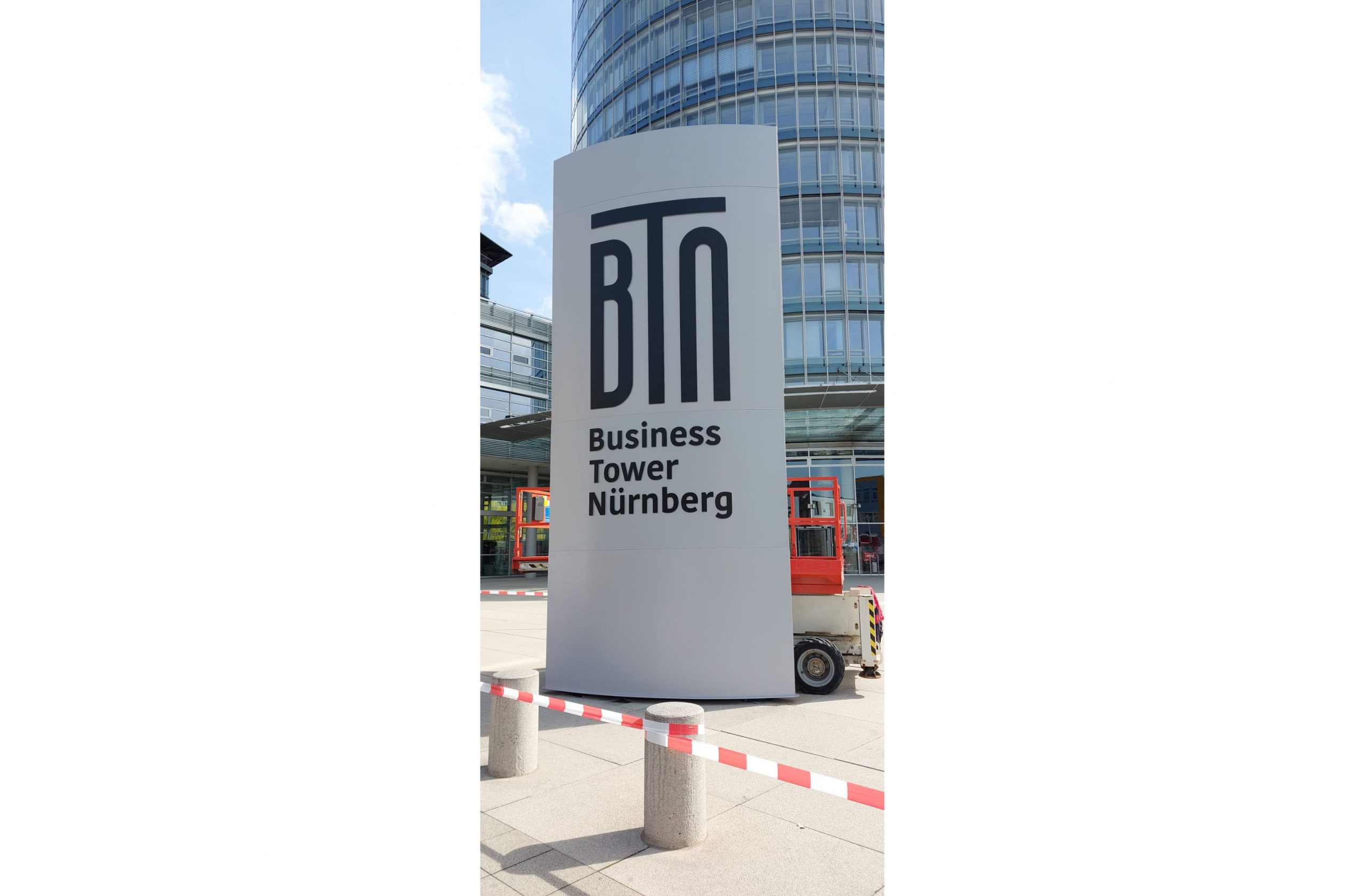 Austausch der Aluminiumhauben des Pylons „Business Tower Nürnberg“.