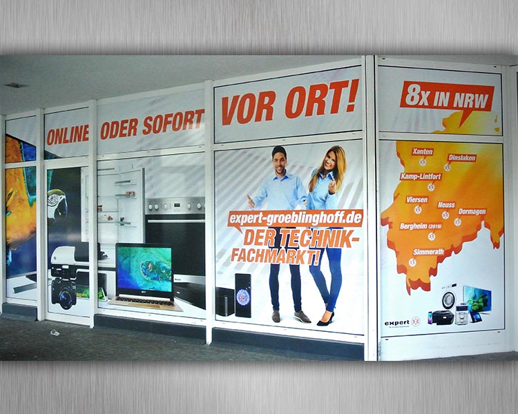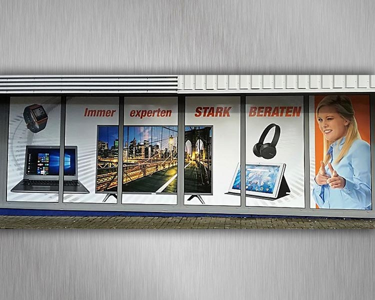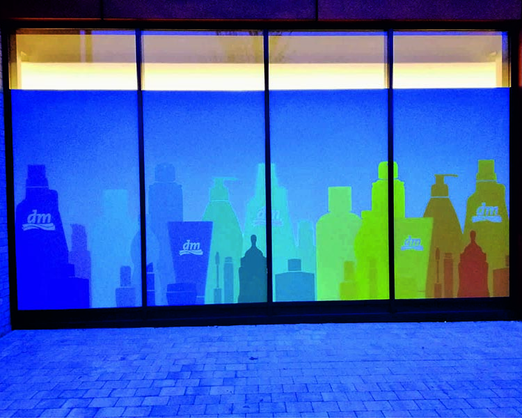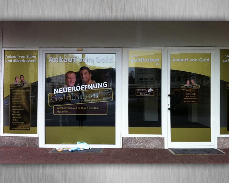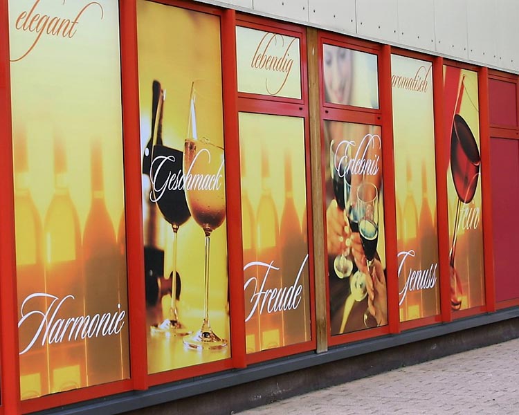Schaufenster sind eine beliebte Werbefläche wodurch Sie Ihre Kunden bereits vor der Türe begeistern können. Hierbei ist es möglich Folienmotive saisonal zu wechseln oder langfristige instore und outstore Beschriftungen vorzunehmen. Egal ob mit Milchglasfolie, einfarbigen Folienplots, Folientexten, Folienbuchstaben, Sichtschutzfolien, Hinterglasaufklebern, Spiegelfolien, Bodenfolien oder Lochfolien… wir setzen Ihre Marke mit den modernsten Hochleistungsfolien und kreativen Entwürfen gekonnt in Szene!