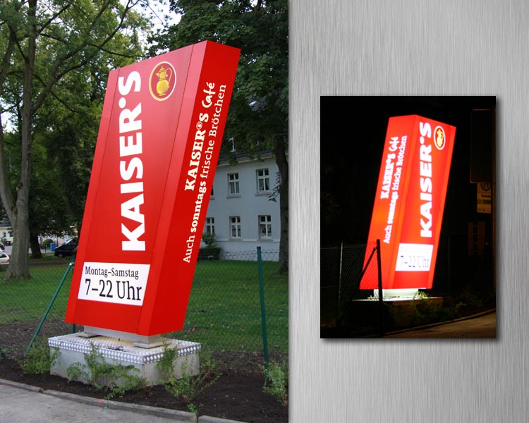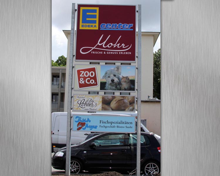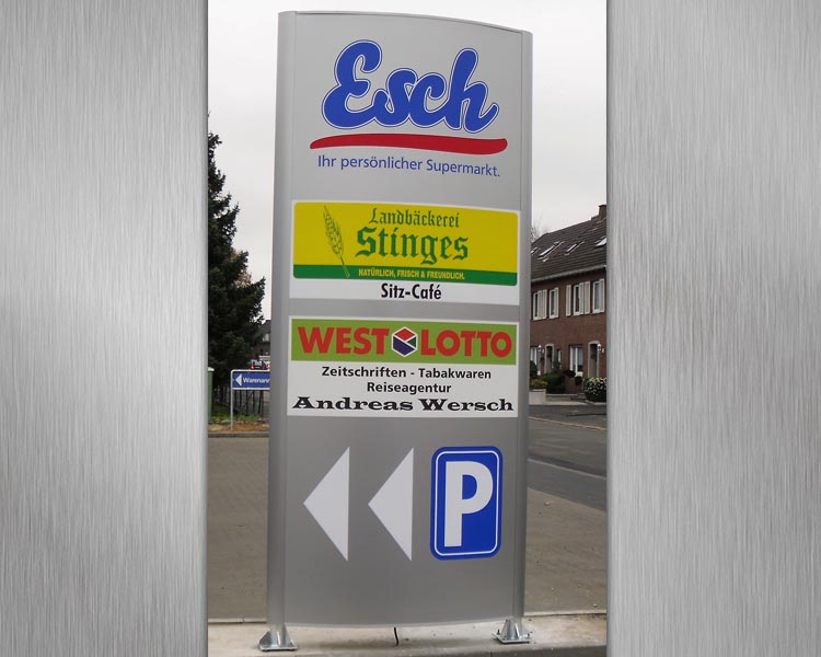Mit Hilfe eines Werbepylons machen Sie bereits von der Straße aus auf sich aufmerksam und leiten den Kunden zu Ihrem Point of Sale. Der Größe Ihres Werbepylons sind hierbei keine Grenzen gesetzt!