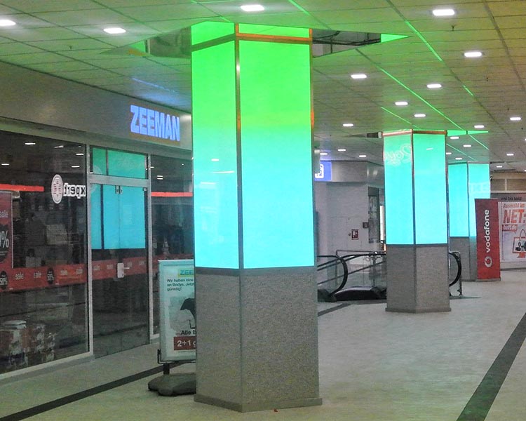 Durch beleuchtete Säulenverkleidungen setzen Sie eindrucksvolle und kreative Akzente in Ihrer Verkaufsumgebung. Gerne auch mit Hilfe einer farbenfrohen RGB-Beleuchtung!